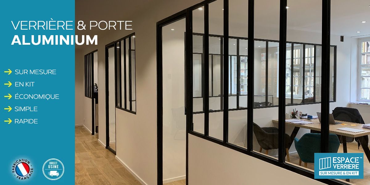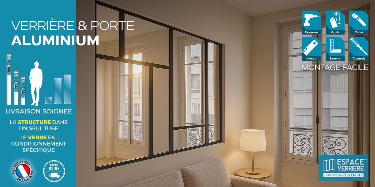 La verrière intérieure fait partie des tendances actuelles et ce n’est pas pour rien : c’est à la fois un moyen d’aménagement bien pratique, et un élément décoratif original. Espace Verrière propose des structures en aluminium, fabriquées sur mesure en France et livrées en kit. Concernant la fourniture du verre, nous vous laissons libres de choisir de commander notre verre trempé (6 ou 8mm) ou de travailler avec le miroitier de votre choix. Notez toutefois que les délais de livraison sans vitrage sont bien plus rapides. Il vous sera également possible de répondre à un besoin plus spécifique (verre insonore ou anti-calcaire).