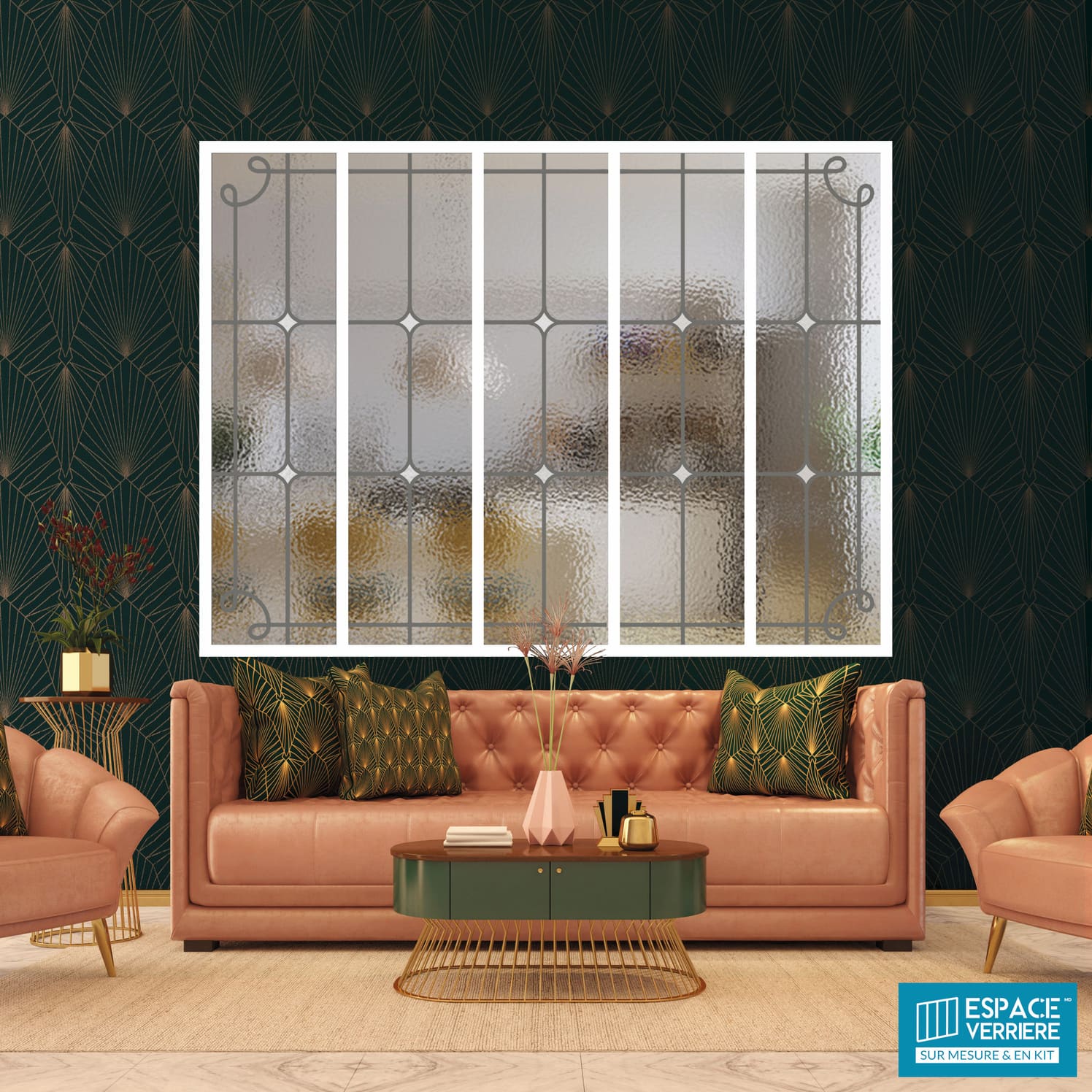 Ce design classique et intemporel habille votre verrière avec délicatesse. Les cabochons sont sablés afin d’apporter du rythme et du contraste au décor.