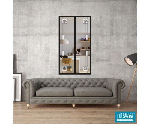 Ce design d’inspiration Art Déco apportera une touche de décoration subtile à votre verrière. Un travail de sablage vient souligner le filet ainsi que les roses dans les angles.
